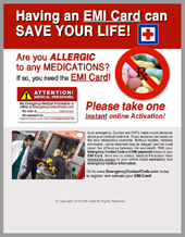 to join the effort in helping to prevent inadvertent administrations of drugs and medications that cause severe allergic reactions and the loss of life. Promotion and use of the EMI Card, also reduces liability by helping to avoid potential litigation due to medication errors.